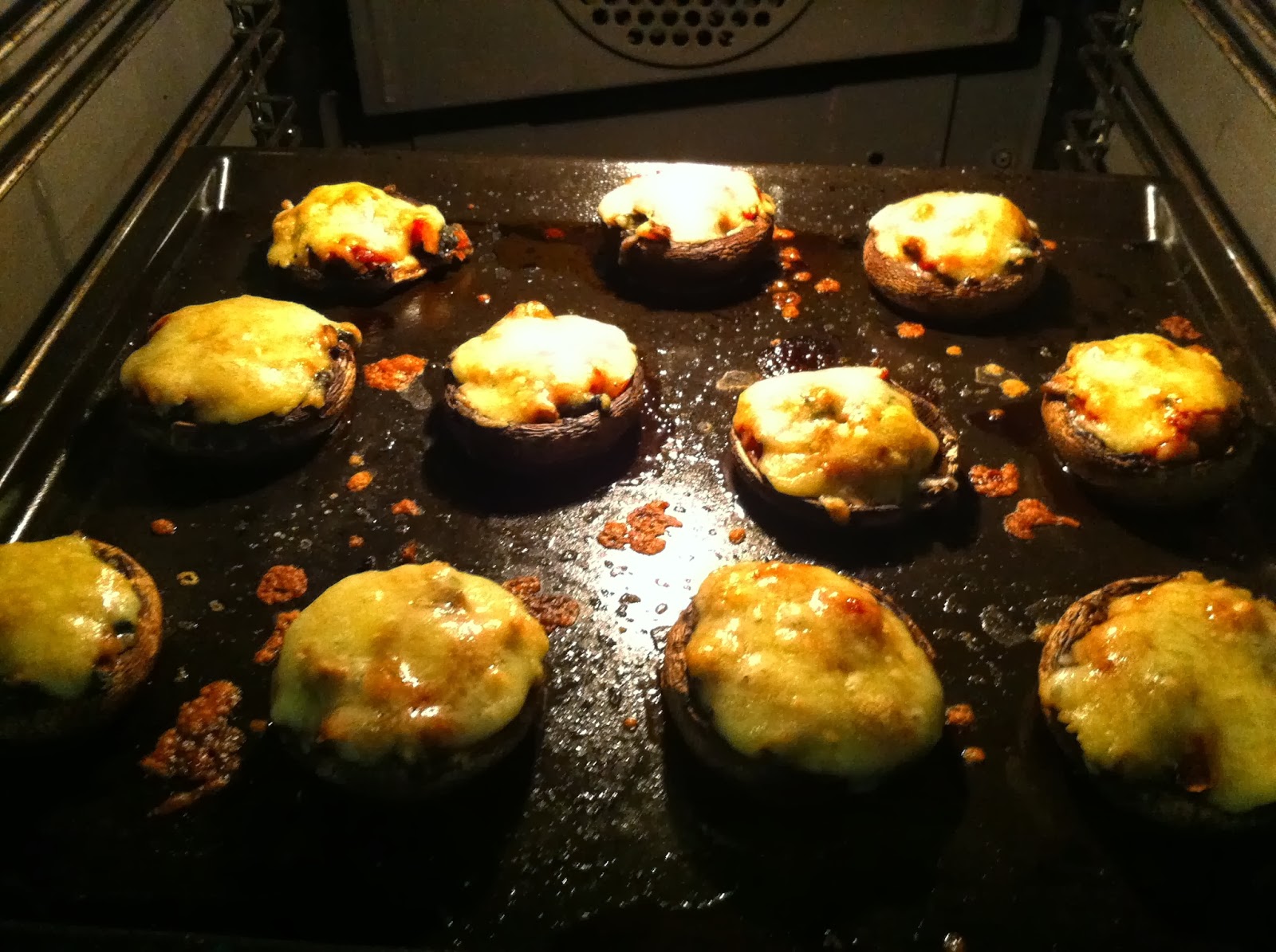 Cogumelos, espinafres, frango, alho francês, fiambre (isto é apenas uma